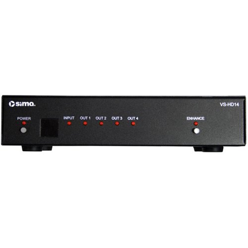 Limited Supply Sima Vs Hd14 Look For 1 HDMI inputs 4 HDMI output Signal boosting for long cable runsIR inputs/outputs for flexible control optionsHeavy-duty all-metal construction4 1/8" W x 1 3/4" H x 8 1/2" D, Brand SimaSignal boosting for long cable runs1 HDMI inputs, 4 HDMI outputHeavy-duty all-metal construction4 1/8" W x 1 3/4" H x 8 1/2" DIR inputs/outputs for flexible control options