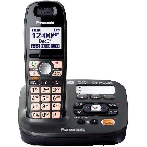 Low Price Best Answering System Wholesale Panasonic KX-TG6591T dect 6.0 Cordless Phone with 1-Handset , Brand Panasonic, Color Titanium black, Talking Caller ID/Call Block/Silent ModeSingle Line,Cordless Phone1 Handset,Tone EqualizerAll-Digital Answering System IncludedDect 6.0 Plus Technology Cordless PhoneEasy to See LCD with Big ButtoneDECT 6.0 Plus TechnologyIntelligent Eco Mode